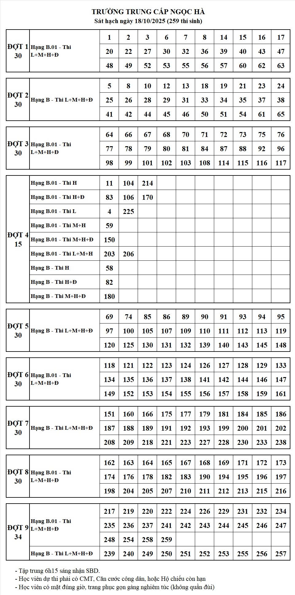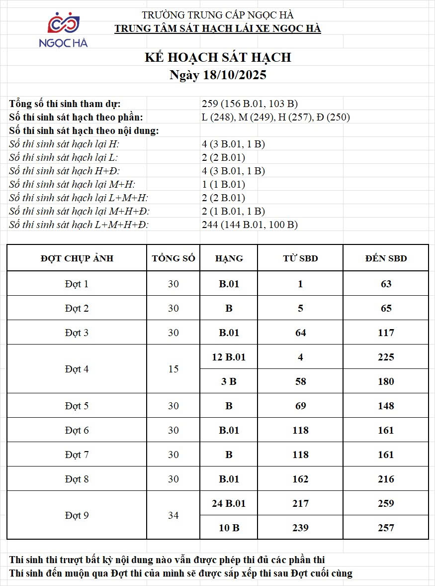CƠ SỞ ĐÀO TẠO : TRƯỜNG TRUNG CẤP NGỌC HÀ KỲ SÁT HẠCH NGÀY 18 THÁNG 10 NĂM 2025 (Anh/ chị học viên có thể tra cứu số báo danh tại trang: http://ngochaco.com) |