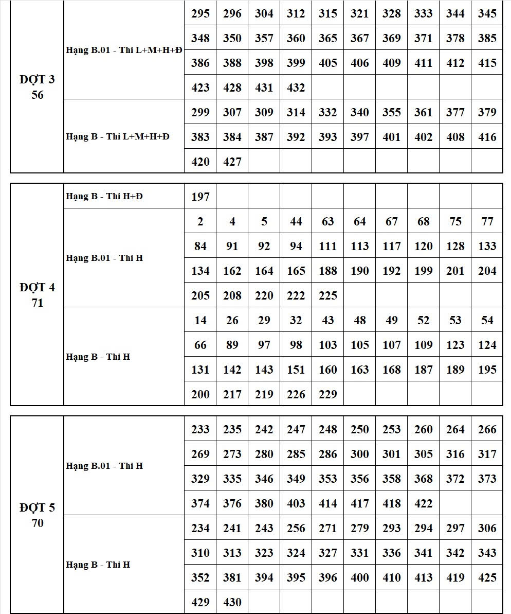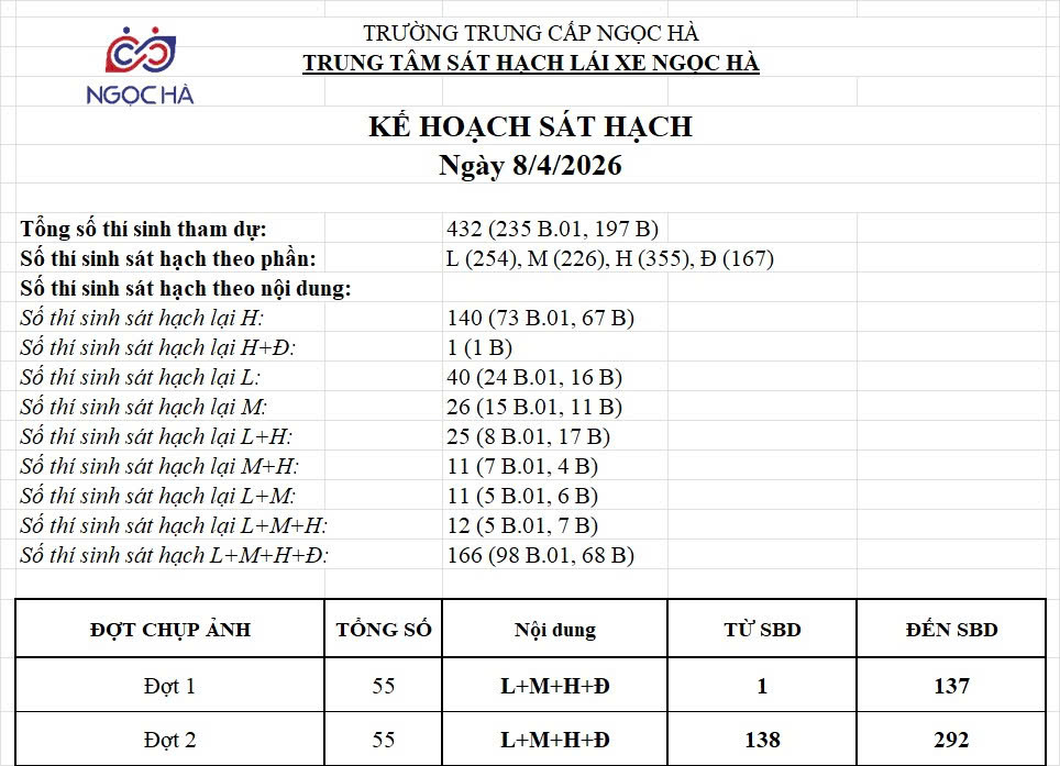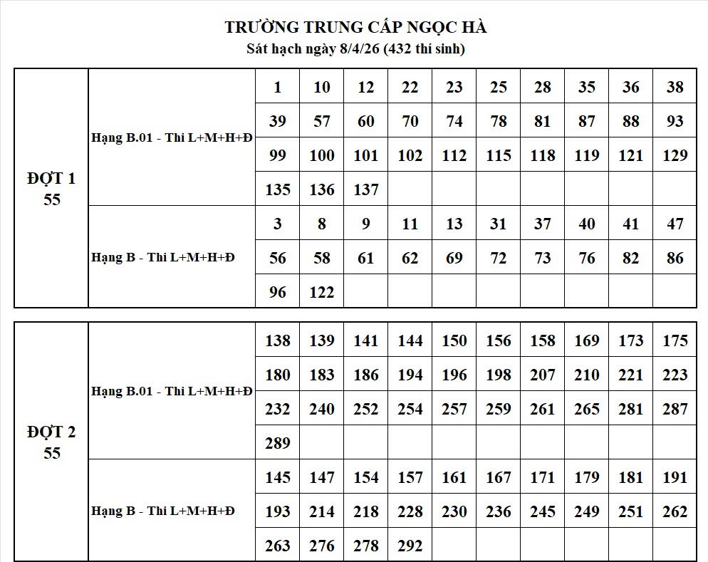 DANH SÁCH THÍ SINH DỰ SÁT HẠCH 8/4/2026